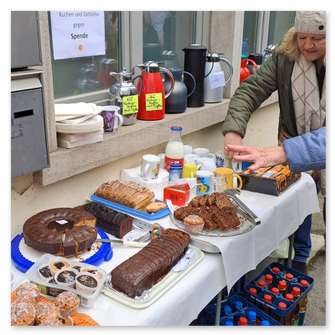 Zum schon traditionellen "fairen Frühstück" am 18. September vor dem Lädchen kamen bei schönstem Spätsommerwetter viele Interessierte zu einem Plausch, nahmen Infomaterial mit und probierten die leckeren Produkte aus dem Lädchen.